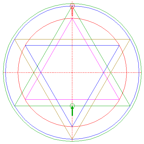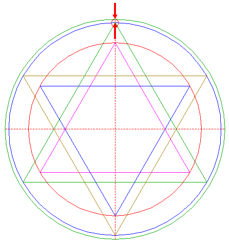 | Construct the inscribed equilateral triangle of circle 7, pointing down. |