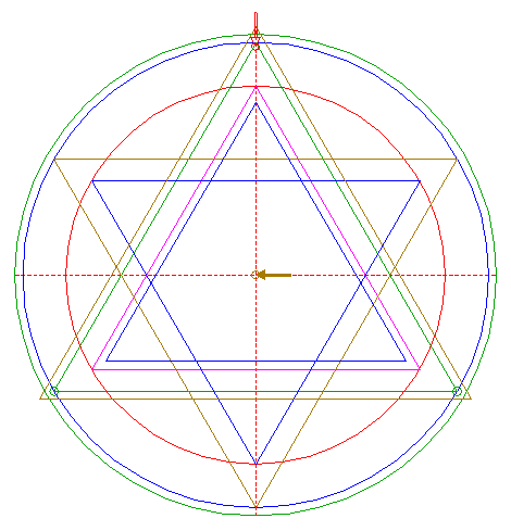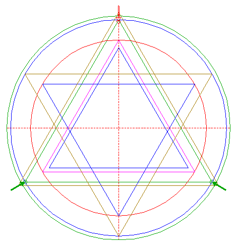 | Copy circle 17 two times, to the lower angular points of triangle 8. |