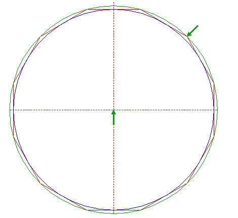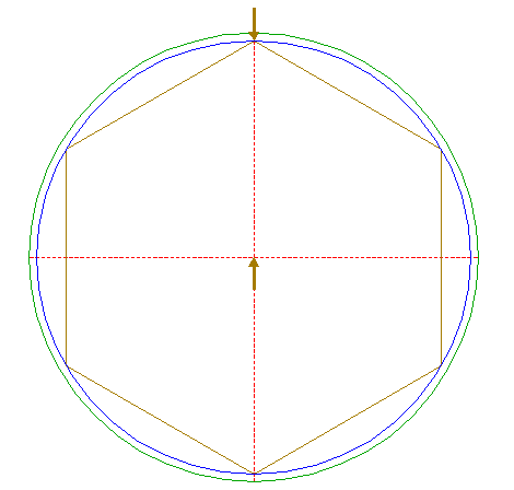 | Construct a "two-points" circle (defined by the two end-points of a centerline) between the center of circle 12 and its lower intersection with the vertical centerline. |