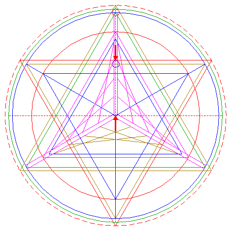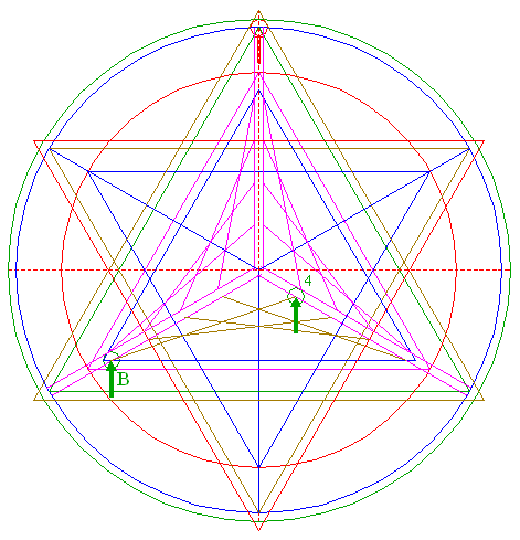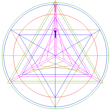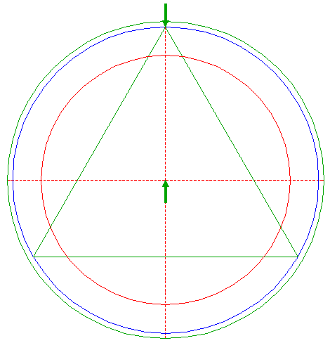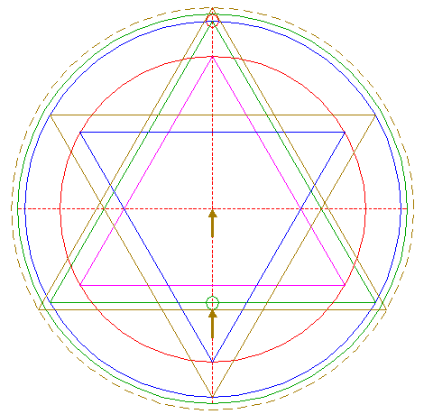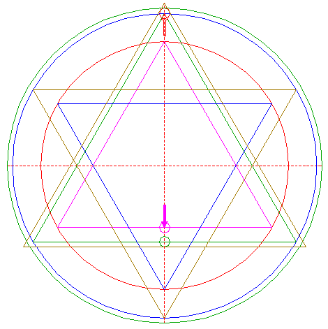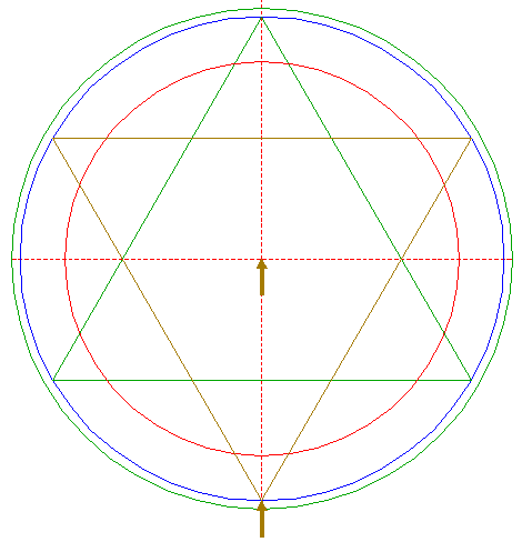| Construct an equilateral triangle (the circumscribed circle of which is) concentric to circle 1, pointing down, and with its upper side tangent to circle 26 at the upper side. |