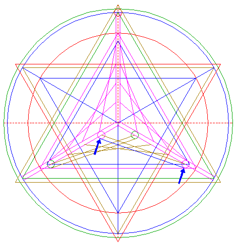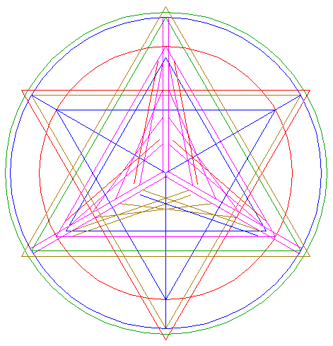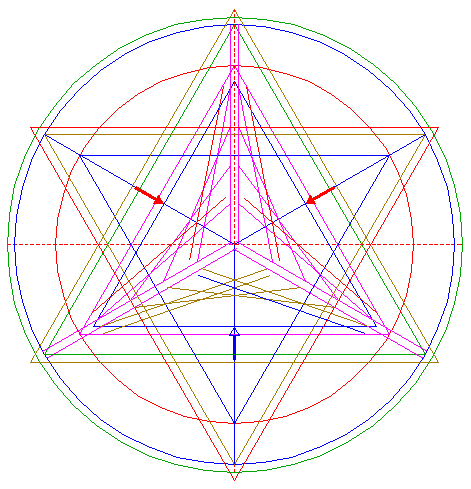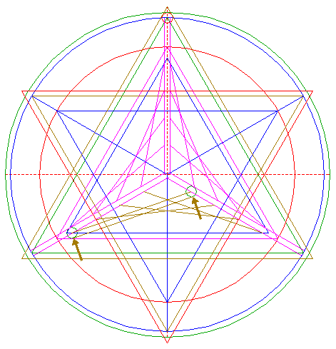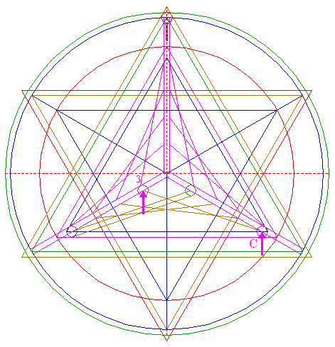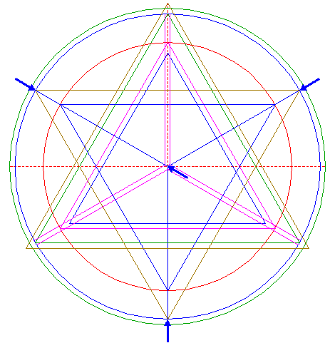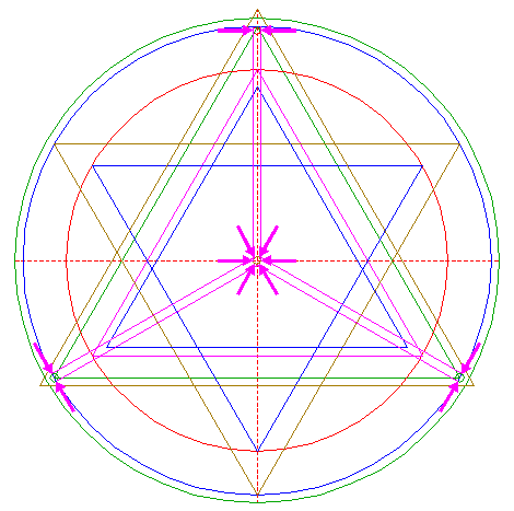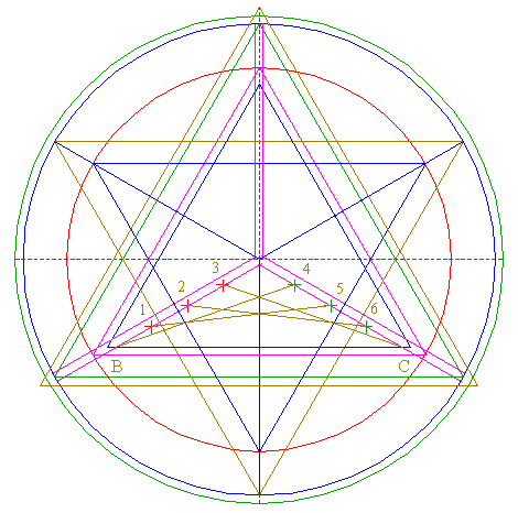 | Repeat steps 28, 29, 30 and 31 two times, with respect to the other two sides of triangle 16, each rotated over 120° about the center of circle 1, as shown. |