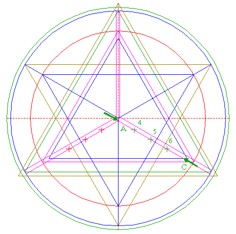 | Divide line AC into four equal parts, and number the nodes 4, 5, 6, from left to right. |