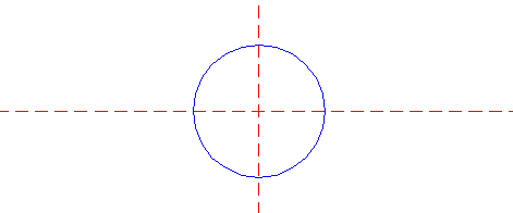 | Draw a circle. Draw and extend the horizontal and vertical centerlines. |