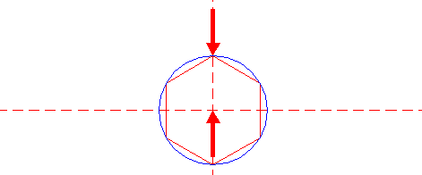 | Construct a "two-points" circle (defined by the two end-points of a centerline) between the lefthand intersection of circle 1 and the righthand intersection of circle 4 both with the horizontal centerline. |