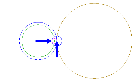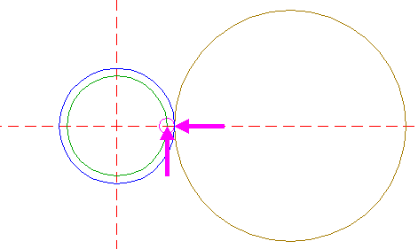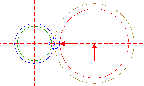 | Copy circle 1 to the righthand intersection of circle 4 and the horizontal centerline, and move this circle to its own corresponding intersection. |
