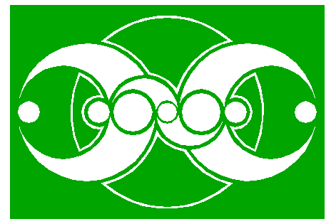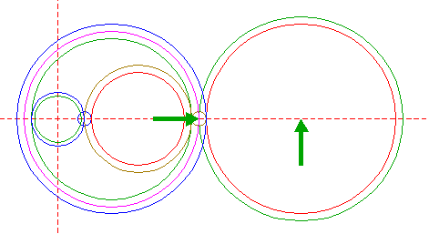 | Construct a "two-points" circle between the righthand intersections of circles 1 and 14 with the horizontal centerline. |