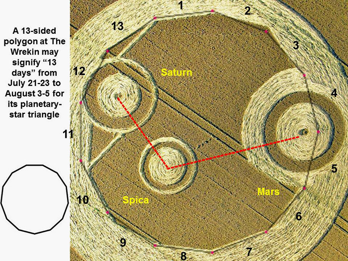 change of the Saturn-Spica-Mars angle from 120o in crops