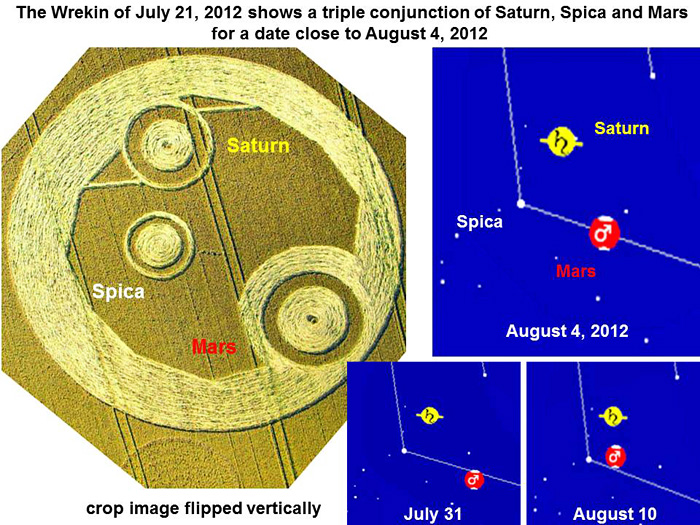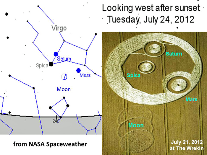 of July 21, 2012 showed a triple conjunction of Saturn, Spica and