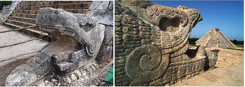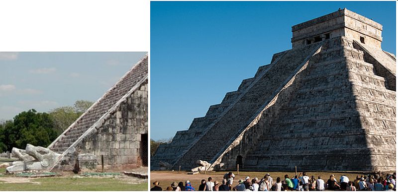 by the shadow effect of the serpent descending on the pyramid Kukulkan