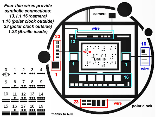 to the polar clock outside. Wire 4 connects Mayan numbers of “1”