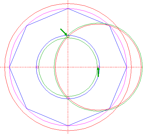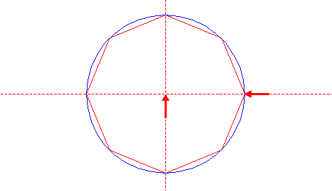 | Construct the inscribed octagon of circle 15, pointing to the right.