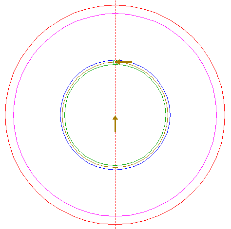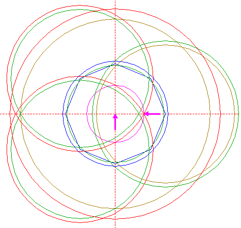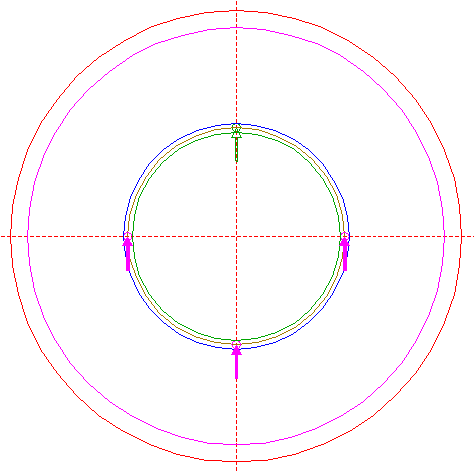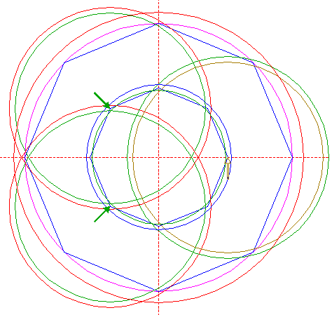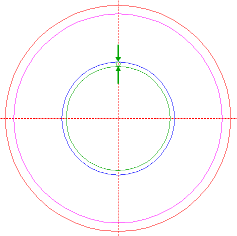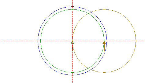 | Construct a "two-points" circle (defined by the two end-points of a centerline) between the upper intersections of circles 1 and 3 with the vertical centerline.