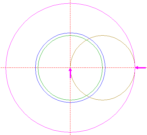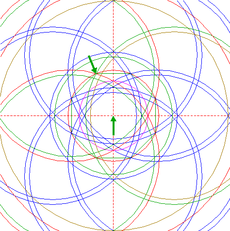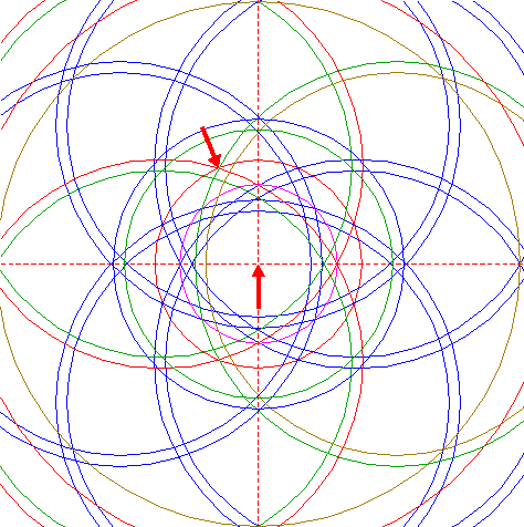 | Construct a circle concentric to circle 1, passing through the upper intersection of circle 13 and lower circle 17.