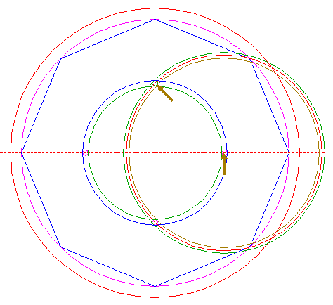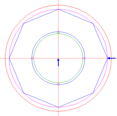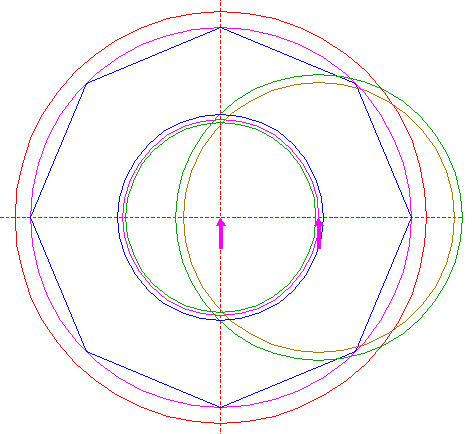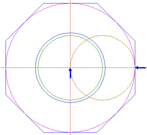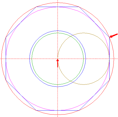 | Construct the circumscribed octagon of circle 5, the mid-point of one side on the horizontal centerline.
