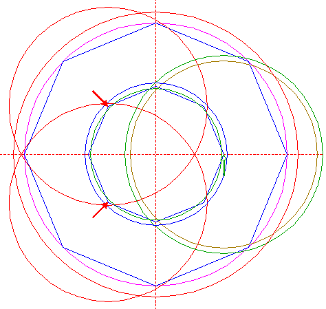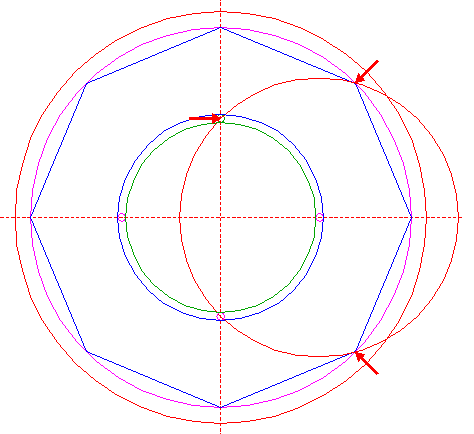 | Construct the inscribed octagon of circle 22, one angular point coincident with the same intersection (of circle 13 and lower circle 17).