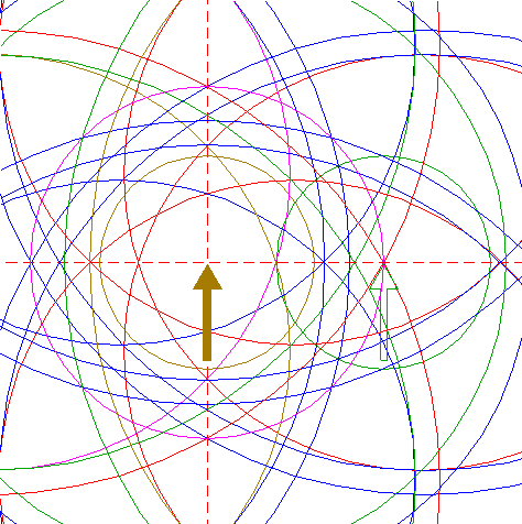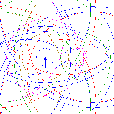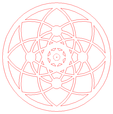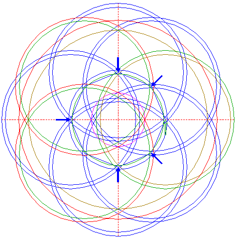 | Copy circle 8 three times, to the other intersections of circle 9 and the horizontal and vertical centerlines.