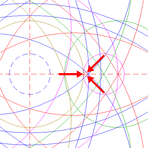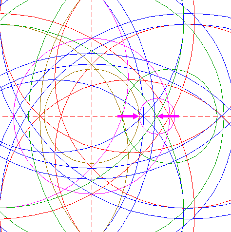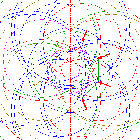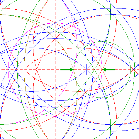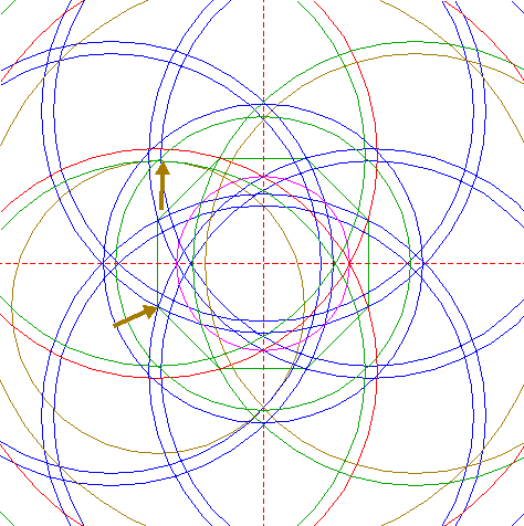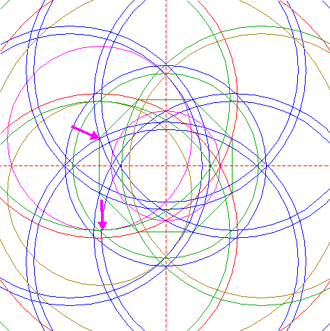 | Construct a circle centered at the righthand intersection of circles 17, passing through the righthand intersection of circles 24 and 25.