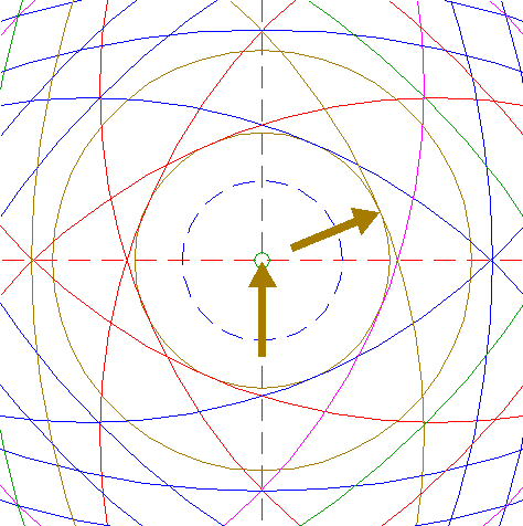 | Construct a circle concentric to circle 1, passing through the righthand intersection of circles 17.