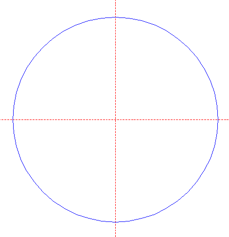 | Draw a circle. Draw and extend the horizontal and vertical centerlines. |