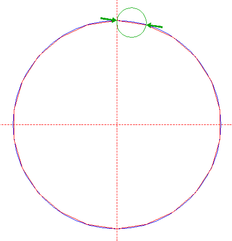 | Construct a "two-points" circle (defined by the two end-points of a centerline) between the top of polygon 2 and its next angular point to the right. |