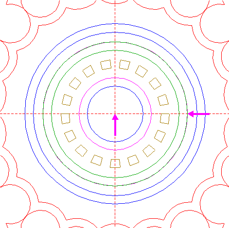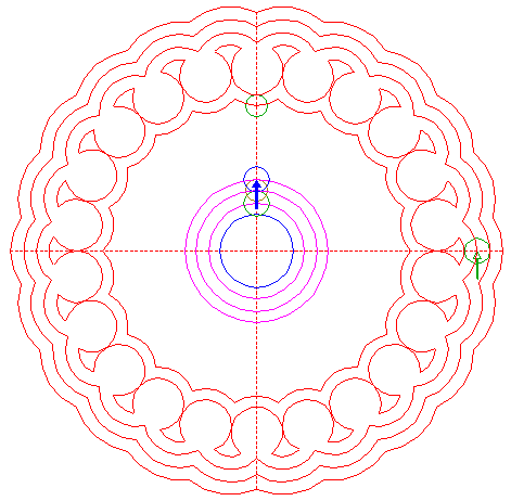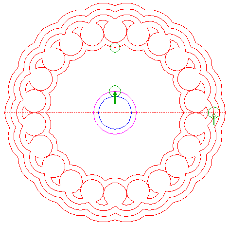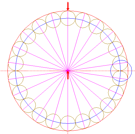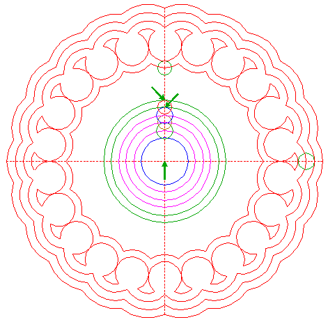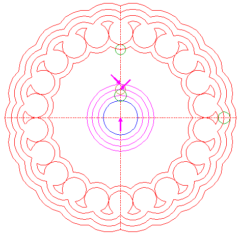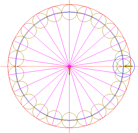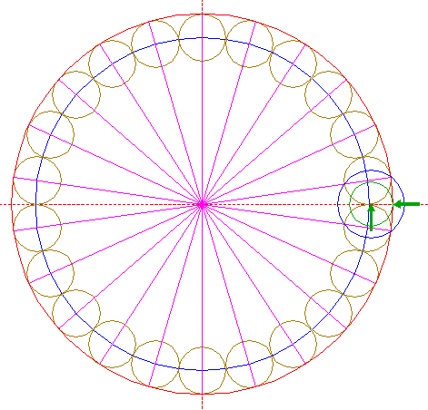 | Copy circle 13 to the upper intersection of outer circle 25 and the vertical centerline. |
