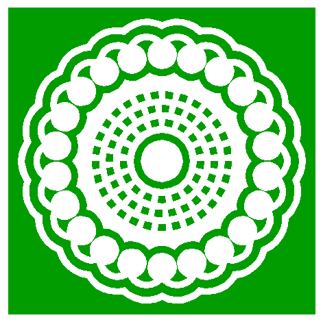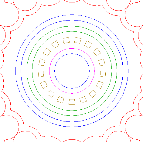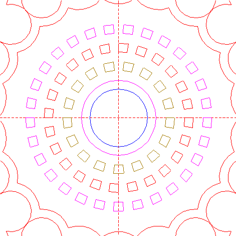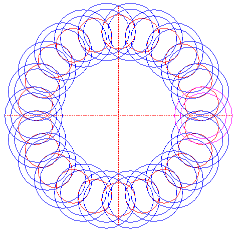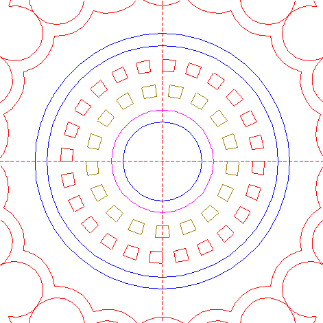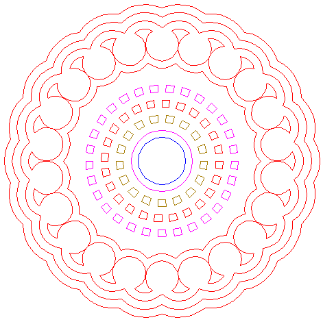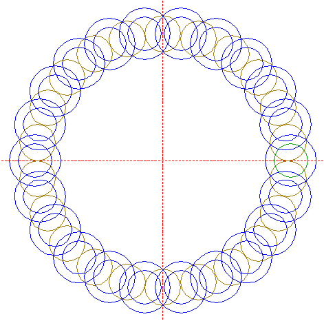 | Copy circle 3 twenty-two times, to the angular points of polygon 2. |
