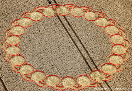 | Remove all redundant parts from circles 4, 6, 8 and 11, such that the shown pattern remains. This is the reconstruction of the first phase of Hackpen Hill (4) of 2013-08-13. |