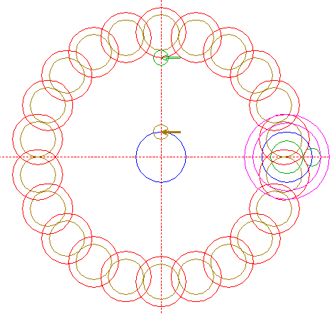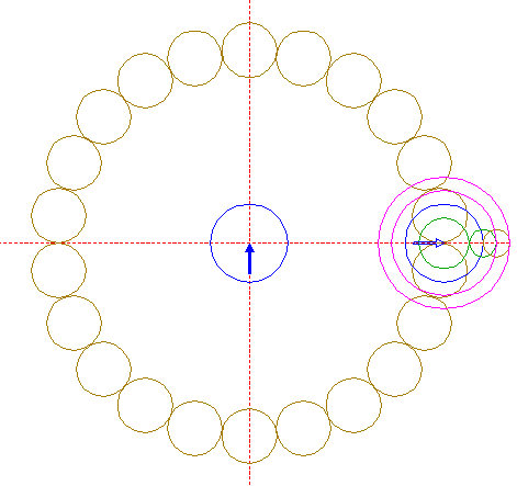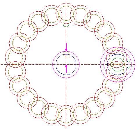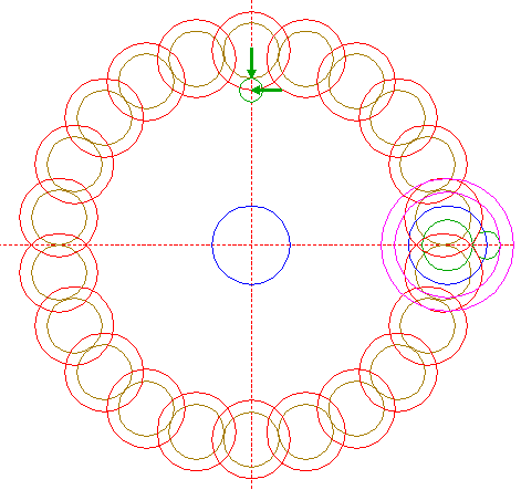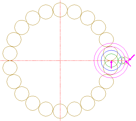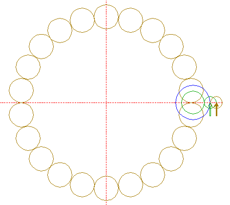 | Copy circle 13 to the upper intersection of circle 20 and the vertical centerline. |
