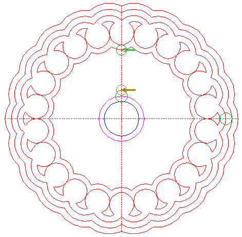 | Copy circle 13 to the upper intersection of outer circle 28 and the vertical centerline. |