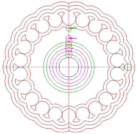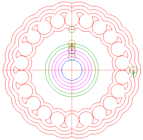 | Copy circle 6 twenty-two times, to the centers of circles 4. |