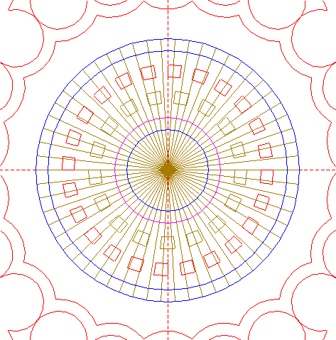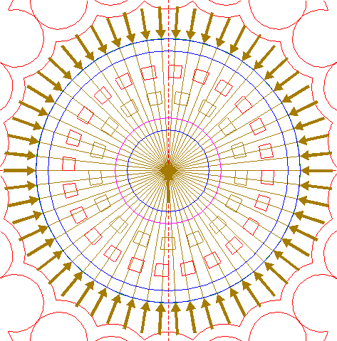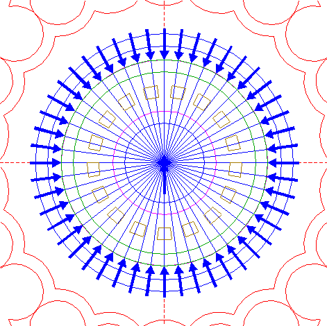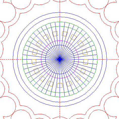 | Draw the thirty-four rays of polygon 32, from the center to its angular points. |