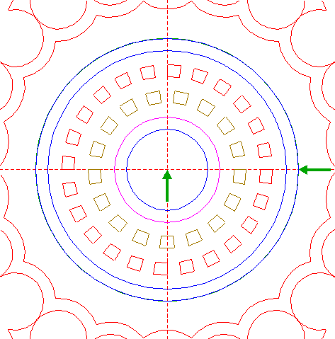 | Copy circles 15 twenty-one times, to the centers of circles 11. |