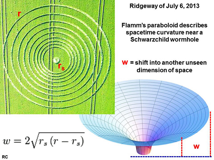 geometric shape of “Flamm's paraboloid”: messages in crops from an