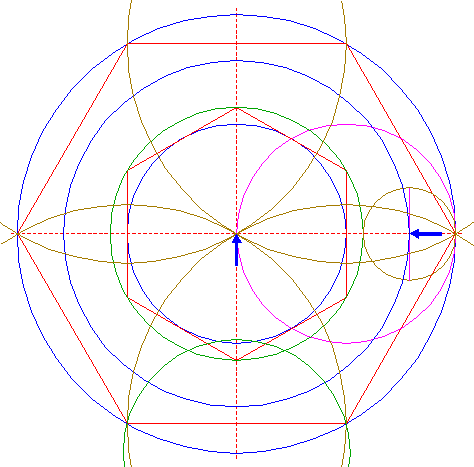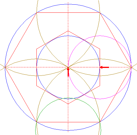 7. | ![]() | Construct the circumscribed hexagon of circle 6, pointing up. |