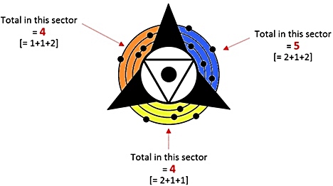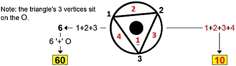 separate areas in the ogham-glyph circle 1 to 10, the sum of