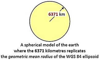 radius: it's the geometric mean radius of the WGS 84 ellipsoid,