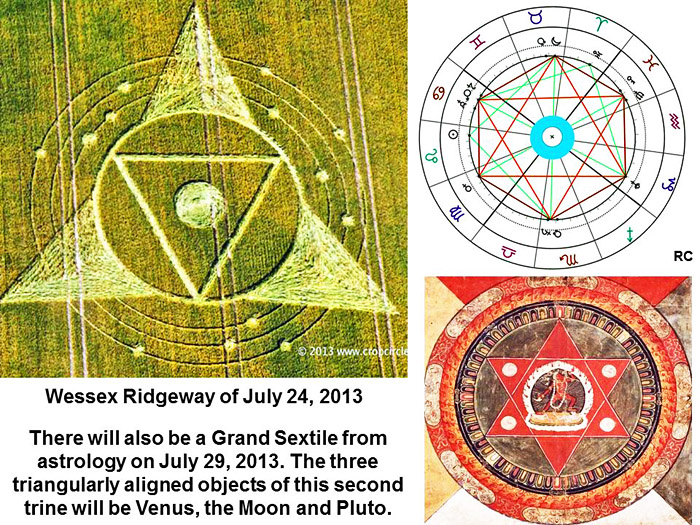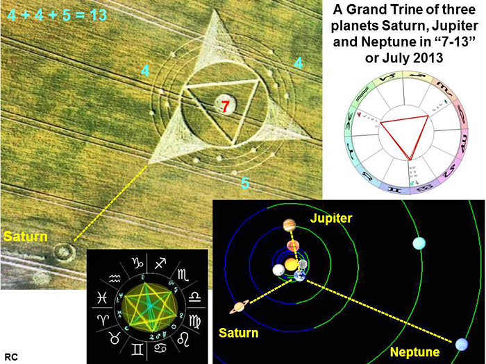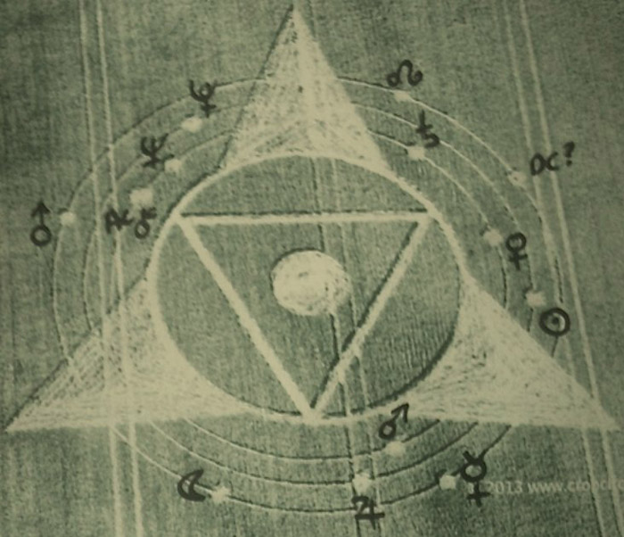 number of orbits of the moons: In crop circle are three orbits depicted,