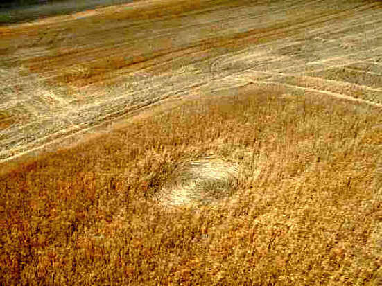 The circle is well into the field, not visible from any nearby pathways or roads.