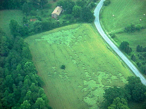 found to have randomly-downed crop near or adjacent to the patterned event; sometimes both situations occur simultaneously. There are also cases (Cherhill,