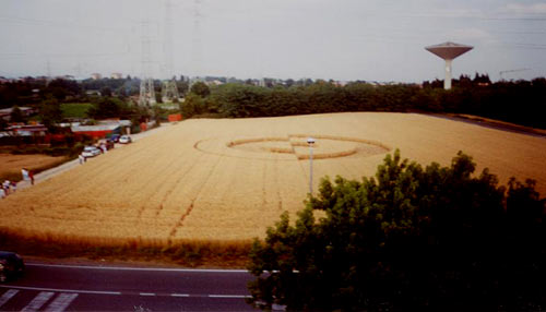 | Greetings! I just wanted to inform you about a crop circle which has recently appeared in a field not really faraway from my house. If you link to the following url, you'll find all the information about it. http://www.cicap.org/piemonte/cp.php?u=cropcn.php The circle has a diameter of 70 metres, that makes 230 feet approx if I'm not wrong. As you will se there are five circles in a bigger circle. These five circles could be intended as the five elements, and all the composition could be referred to the alchemic theories. Here is another url with an expert's interpretation http://www.cicap.org/piemonte/cp.php?u=cropcn_bieck.php Hope you'll understand, since it's in Italian. If you have any problems write me back keep on believing! Giacomo Chiaramello |
