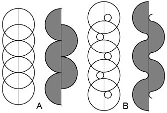 classical flowing sinuous wave (B), but a very much constructed meandering