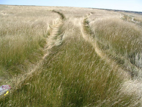 path cutting through the grass as seen from the air, I'd be more