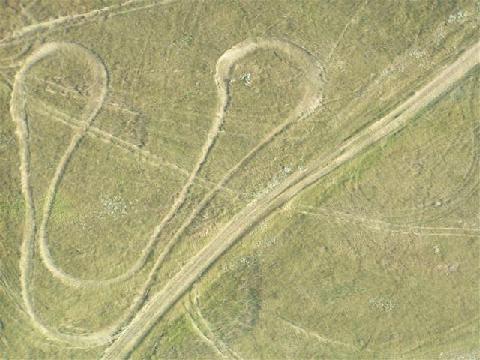 a trail made by dirt bikes. Maybe - if it was just an ordinary flattened
