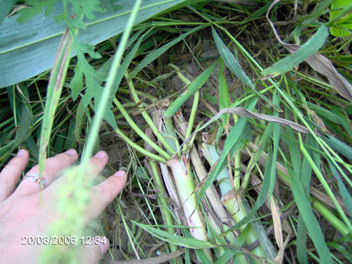 7, the wheat was flattened in small bunches like "criss-crossing Xs",
