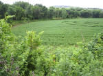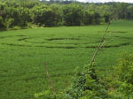 | Description | Three 50ft interconnected circles in a linear fashion and two none connected 25ft Left & Right lateral circles arranged from the centre circle. Bottom of each plant seem to be sliced at an 80-degree angle with dark brown spotting around the incision area. In the normal field, soy plants are tightly planted and the soil seems to be dense and moist with no exposed patches. However, in each circle centre there is a dry patch of soil with no visible plant systems in a diameter of 1-2 feet. Round this was the A typical circle with the plants laying in a right-handed pattern and only a few inches thick from the ground. Even though it seems to rotate in a circular fashion, there are areas of each circle where the plants seem to be laying in a 1-3ft wide zigzagging pattern. This disturbance in the pattern was slight and did not interfere with the overall circular formation. |