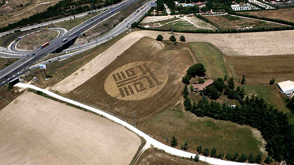 Circular crop with geometric figures