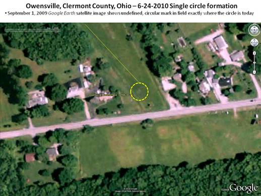 24, 2010 – Owensville, Clermont County, OhioSingle Crop Circle Goes Unreported in USA for Possibly 10 Months