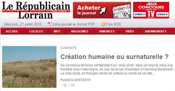 some crop circle among whom that of Hesse and that of Hérange. Here
