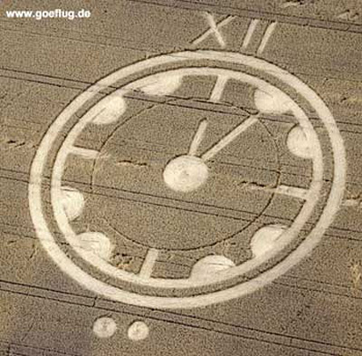 Comment - This formation of the clock-face with the clock hands 5 past 12 refers to the year 2012. Or does it refer to the adverts for the film "5 past 12 - the climate is hitting back"?
