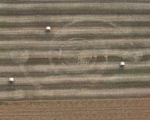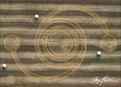 From the aerial photo taken on June 29 can be seen that the field has been harvested but the geometry is still visible. The circle had a small circle nearby, surrounded by two rings where every two arms ending in two more circles. http://forum.nexusedizioni.it/il_crop_di_spirano-t4671.0.html